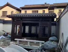 這個項目是湖北黃崗市的一個村里,定制的是一套古建小青瓦防腐木長廊,尺寸是長度11米,寬度為2.8米,總面積為30個平方米左右。陳總在網上找到我們